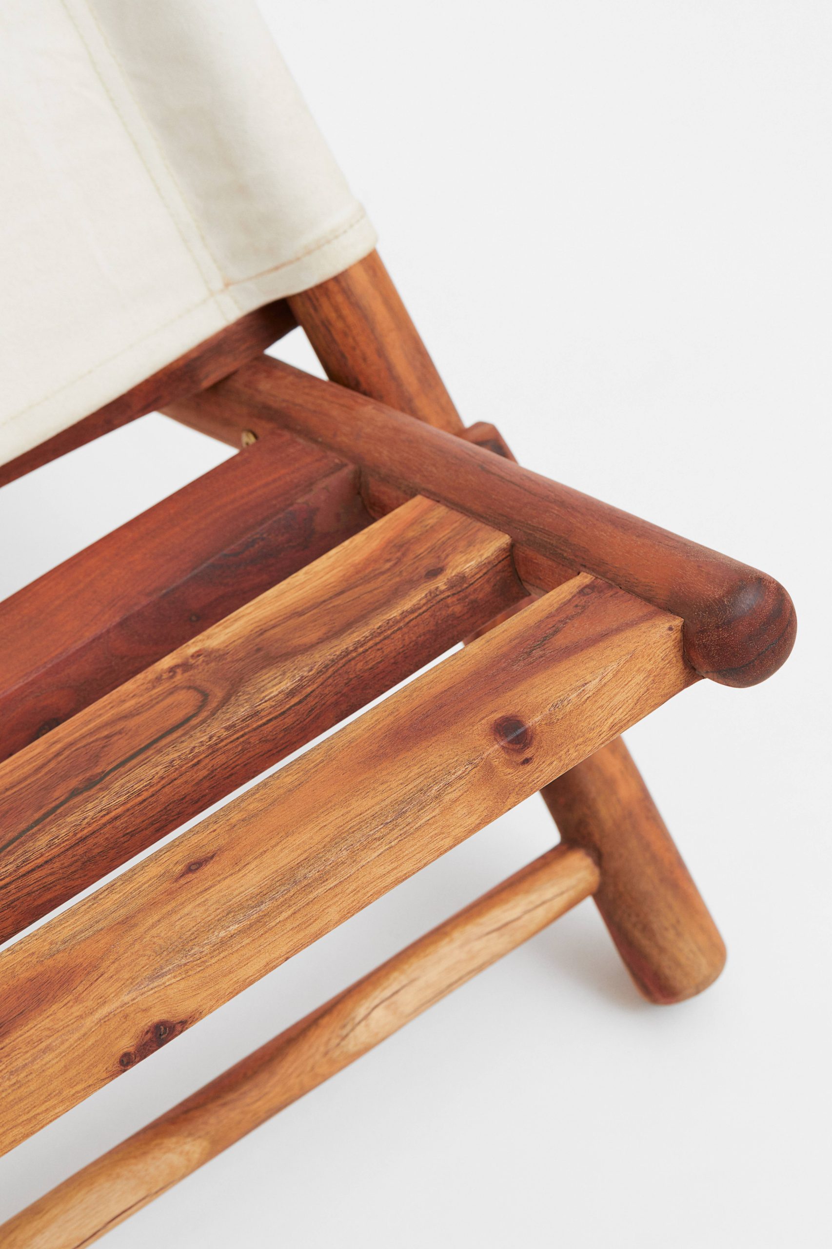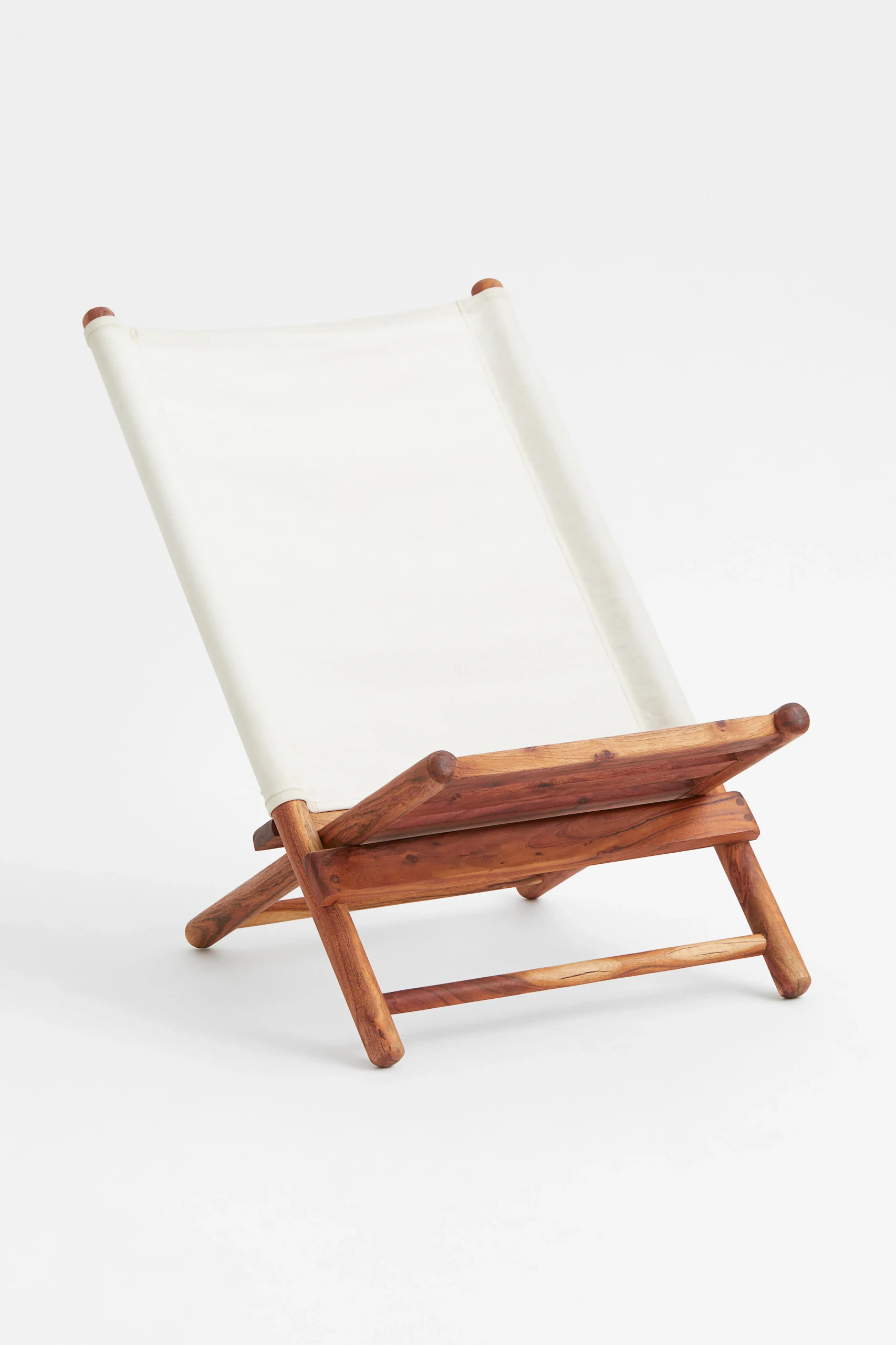 En loungestol av akaciaträ med rygg av vävd bomullskvalitet som passar lika bra på uteplatsen som balkongen. Stolen är enkel att fälla ihop för smidig förvaring och transport. Bredd 58 cm. Höjd 77 cm. Levereras monterad.